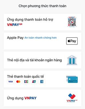 Các phương thức thanh toán qua VNPAY